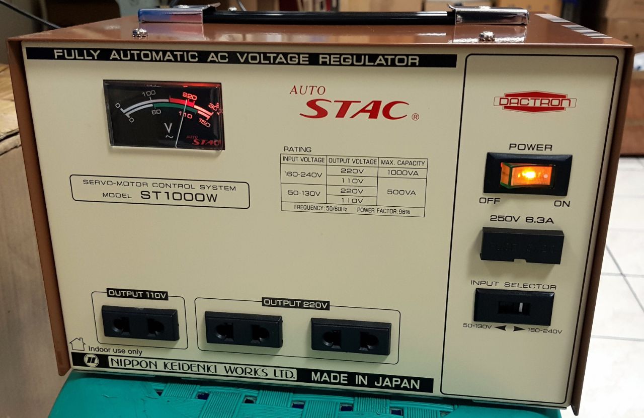STABILIZER STAC 1000 W AUTO STAC ( Made IN Japan ) FULL AUTOMATIC AC VOLTAGE REGULATORS |